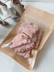 フリーズドライのイチゴを混ぜたイチゴチョコレートを使用しています。